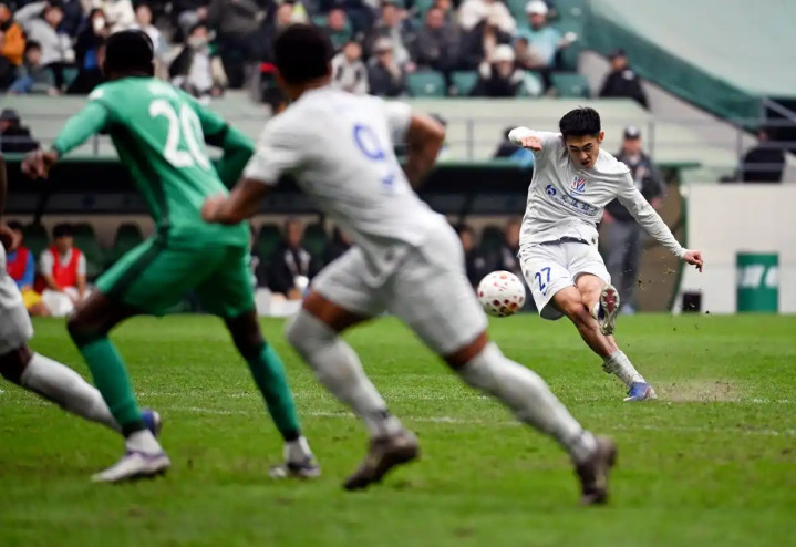 下半场易边再战,申花很快就找到了状态,第68分钟,他们在禁区前拿到了直接任意球的机会,陈晋一主罚,左脚踢出一道完美的弧线,绕过人墙飞入左上死角,申花1-1扳平了比分!