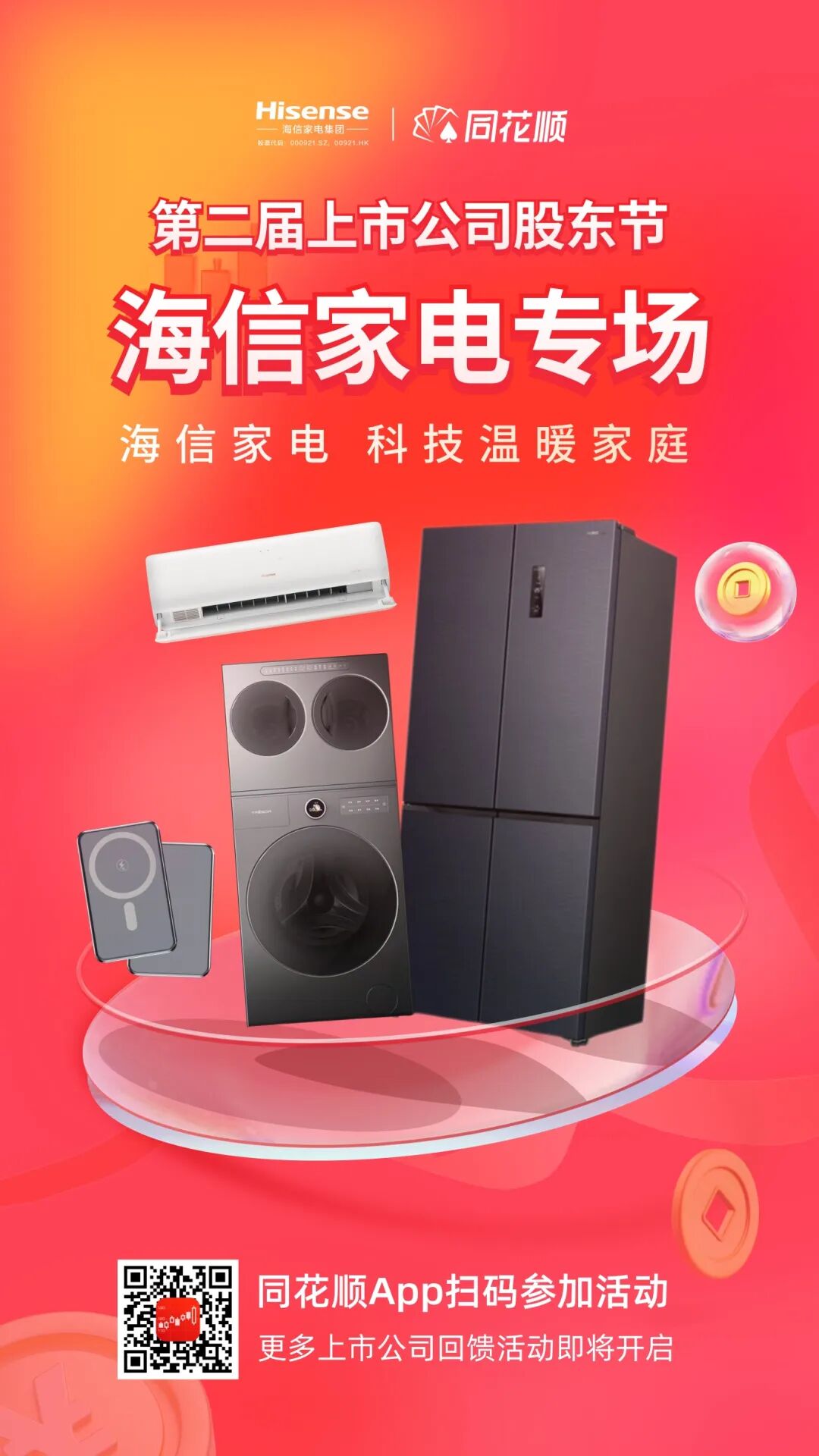 ①进入海信家电股东节专场活动页:同花顺App搜索“海信家电”“股东节”或扫描下方海报二维码;